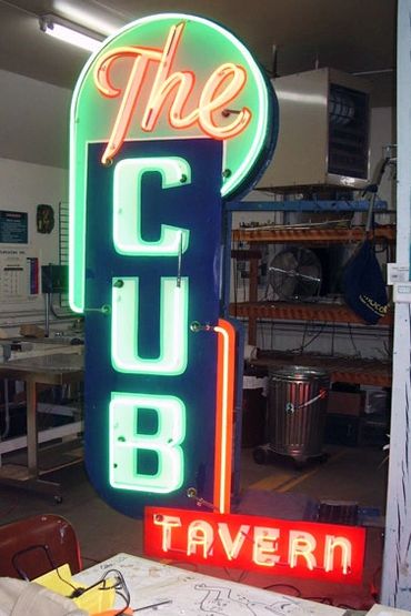 Stored by our friends at Yanke for several years, the sign started its restoration journey in stops and starts. The 'can' needed repairs and a whole lot of loving care before it could be sanded, repainted and given over to the masters at Classic Design Studio. That gorgeous, rich new coat of paint and marvelous lettering sets the stage for the carefully bent neon lettering from Rocket Neon.